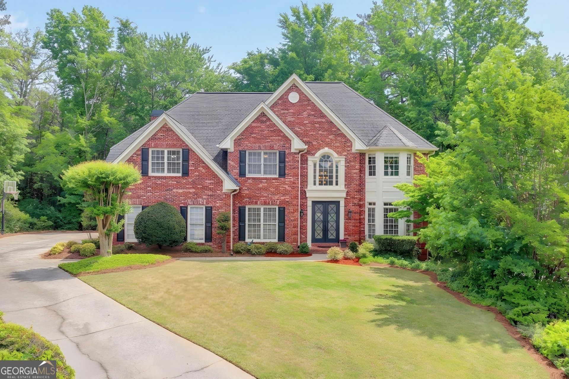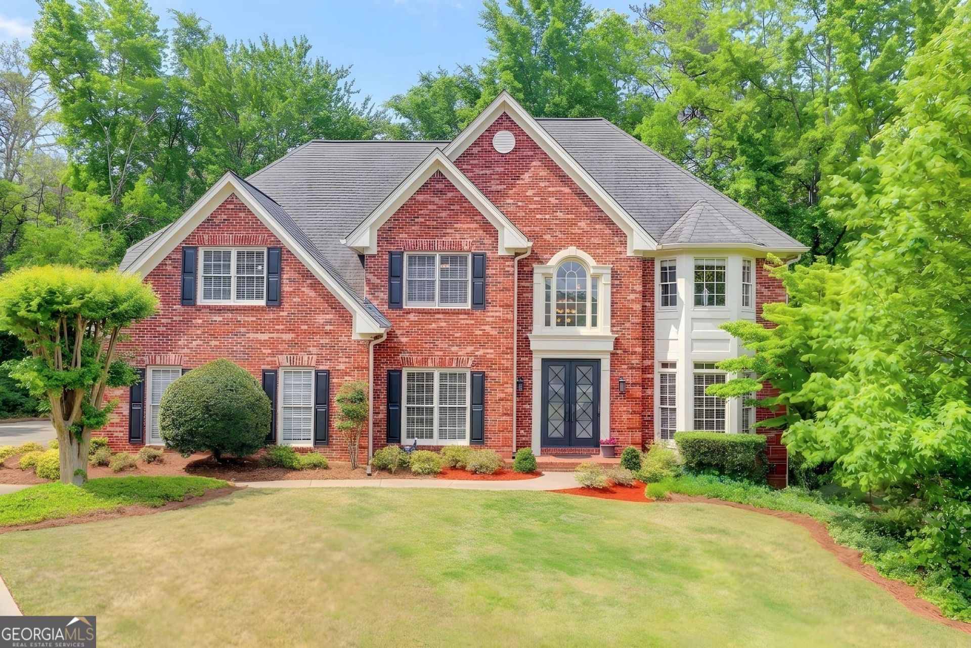 Stunning 3-side brick home in prime Alpharetta on a coveted, level park-like lot. Grand light-filled rooms include a high-ceiling living room with updated fireplace and gleaming hardwoods throughout the main level. Chef-ready granite island kitchen with stainless appliances opens to a dramatic 2-story family room ideal for entertaining. Elegant formal living and dining rooms, front and back staircases, plus a main-level guest suite with full bath. Luxurious master suite with remodeled spa-like bath, his-and-her walk-in closets, and an additional Three more generous bedrooms and remodeled full bath upstairs. Fully finished terrace level features a media area, kitchenette, recreation room, exercise room and full bath, with abundant storage. Low deck, private backyard, and meticulous maintenance. Located in active Park Forest swim/tennis community near the Greenway, shopping, restaurants and only 5 minutes to Avalon. A must-see!